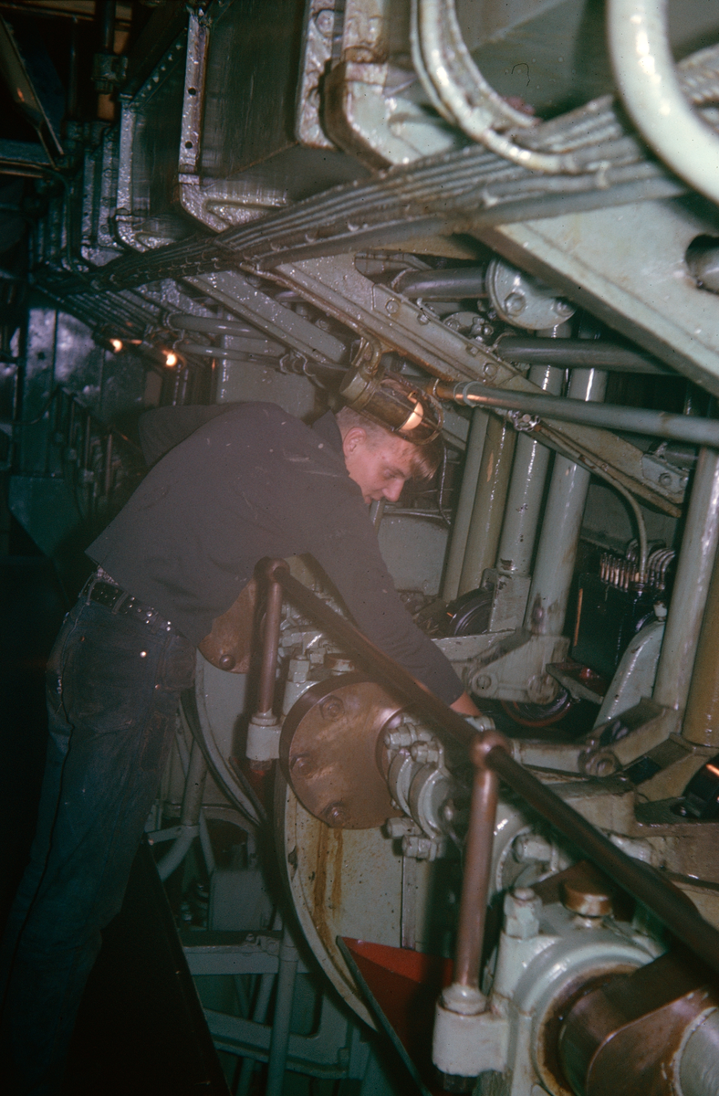 Besättningsmannen Peter Lindquist arbetar i maskinrummet på M/S NORDSTJERNAN.
