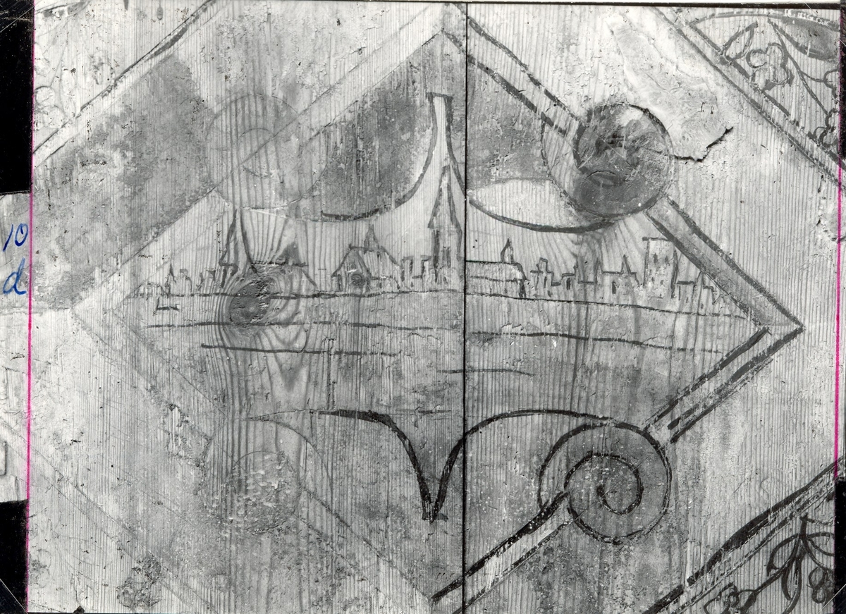 Kalmar slott: Detalj av Kungsmakets panel i pannå. Orginal pannåns mittparti.