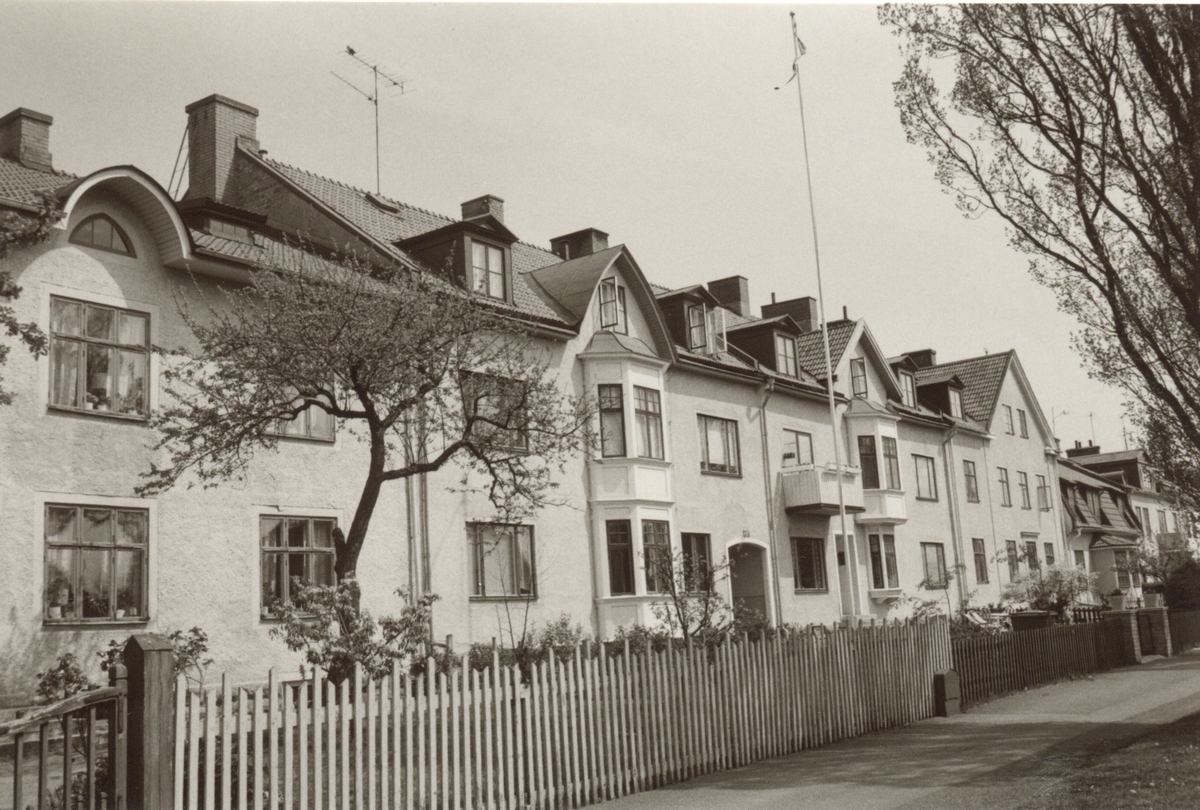 Radstående flerfamiljshus från första halvan av 1900-talet, på Drottning Margaretas väg i Kalmar.