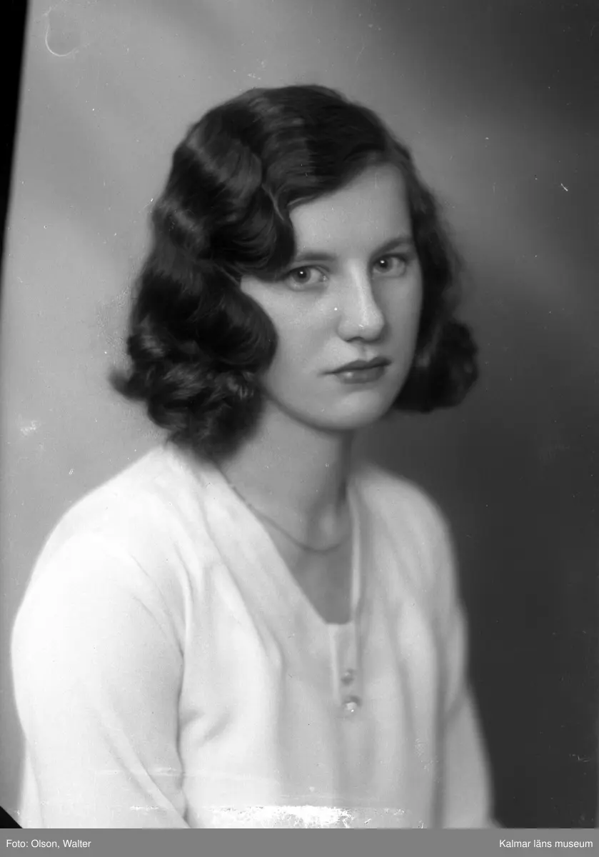 Ateljébild på en kvinna. Enligt Walter Olsons journal är bilden beställd av Signe Svensson.