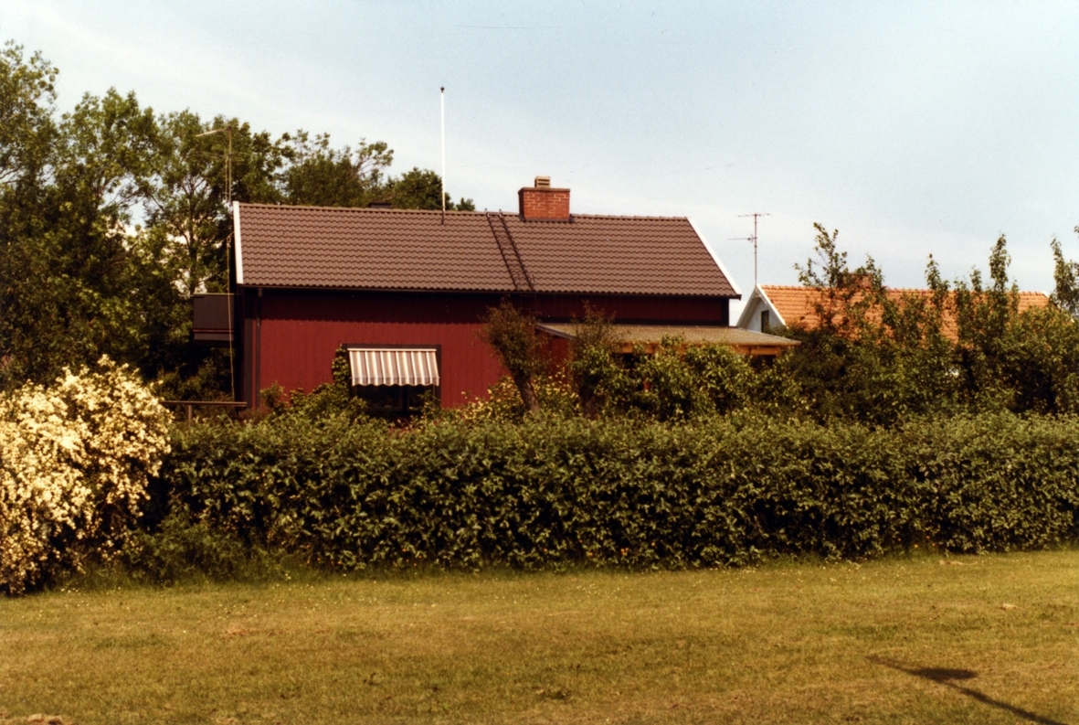 Bostadshus med röd träfasad och sadeltak. Byggmästaren hette Bertil Danielsson.