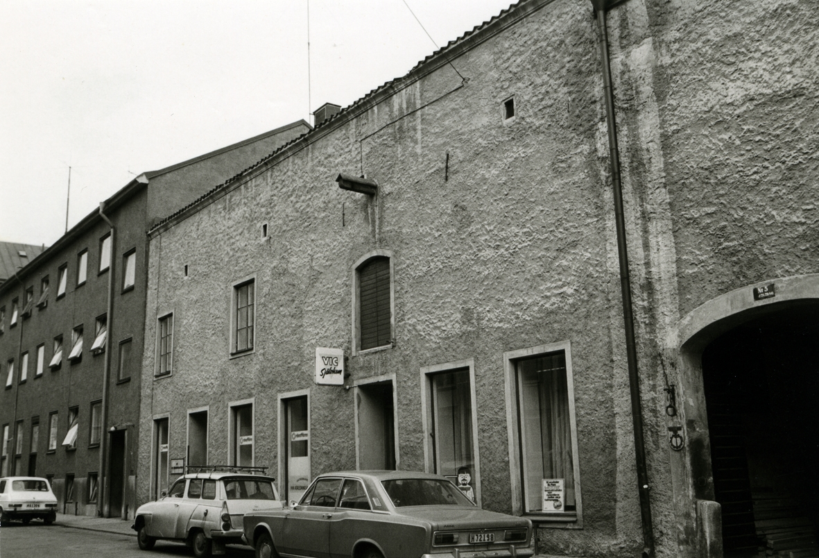 Fasad mot Ölandsgatan. En affär ryms i byggnaden.