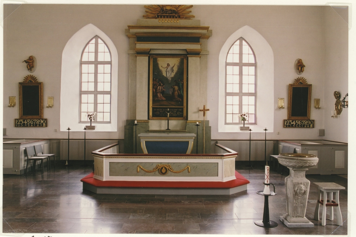I sin nuvarande form består kyrkan av ett rektangulärt långhus med kor i öster och torn i väster. Ursprungliga kyrkan uppfördes på 1100-talet. Det rakt avslutade koret tillkom på 1200-talet. Bortsett från kyrktornet fick kyrkan sin nuvarande form år 1776. Kyrktornet byggdes till 1819 och ersatte en klockstapel.