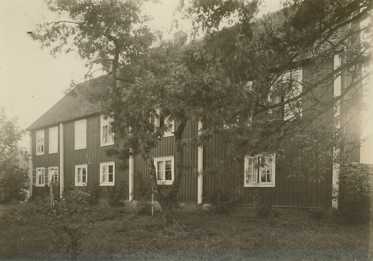 Gärdslösa prästgård, huvudbyggnaden från från trädgården. Det högra partiet av huset är av senare datum.