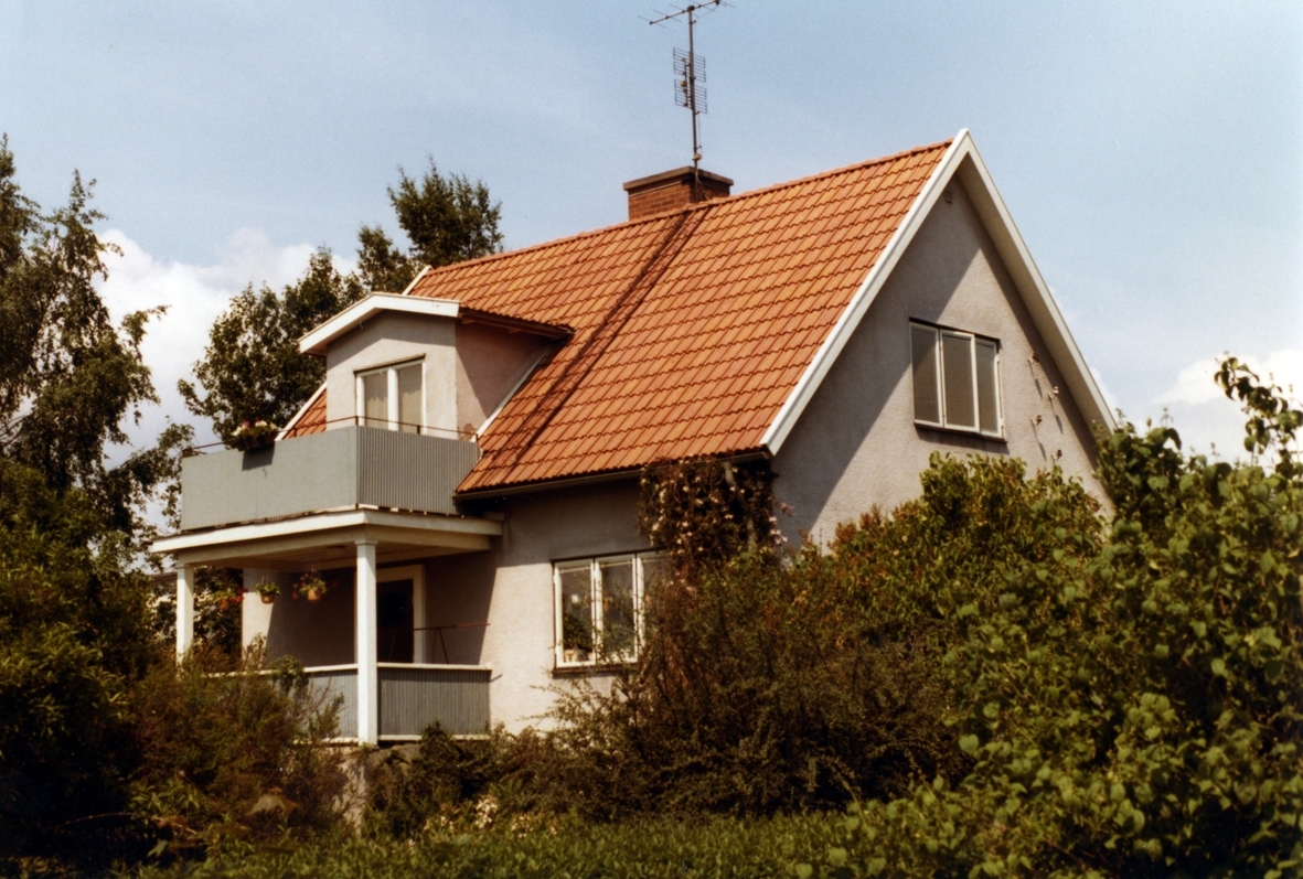 Bostadshus med balkong och veranda, samt sadeltak, byggmästare var Bertil Danielsson.