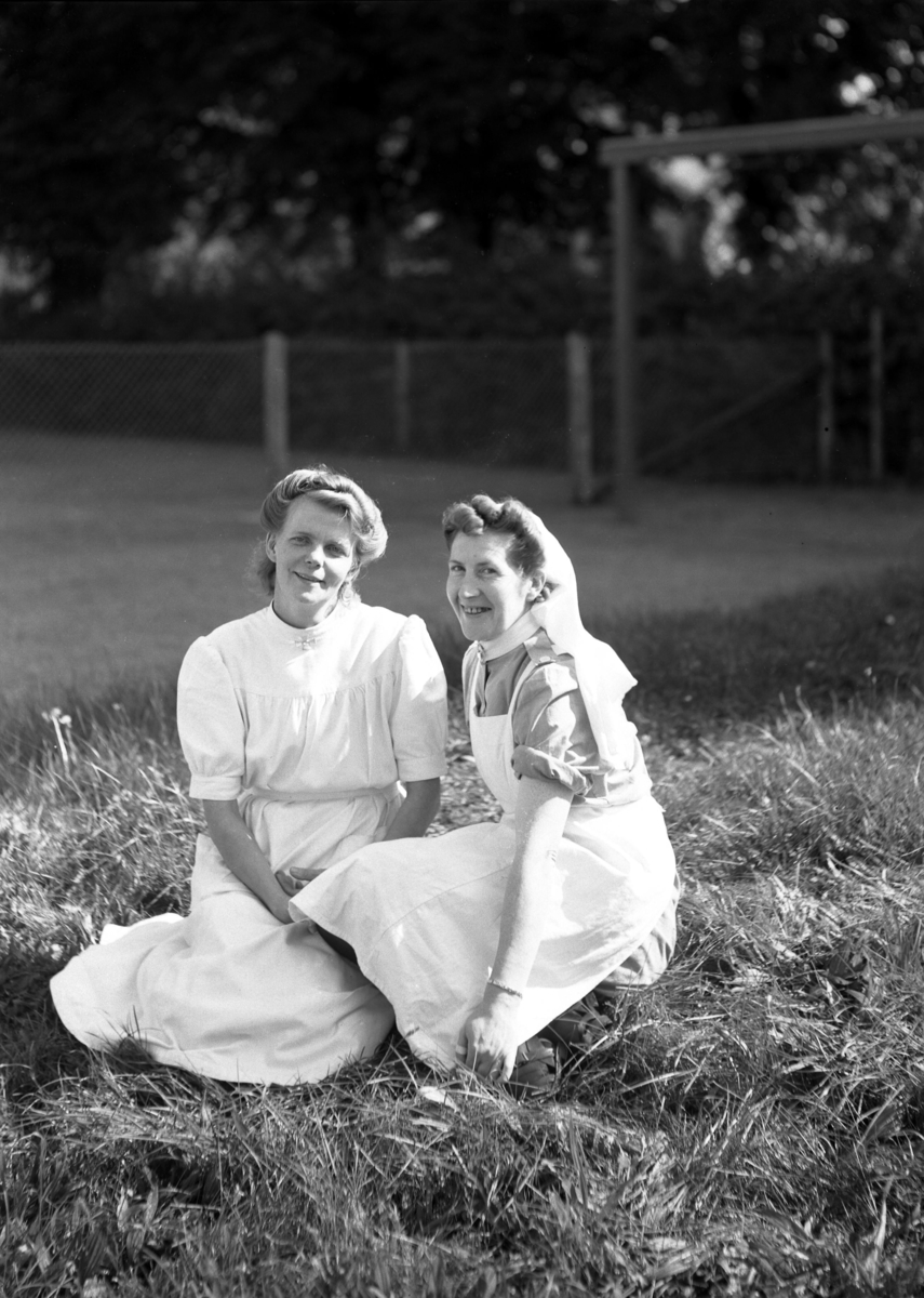 Två sjuksköterskor utanför Beredskapssjukhuset i Kalmar.