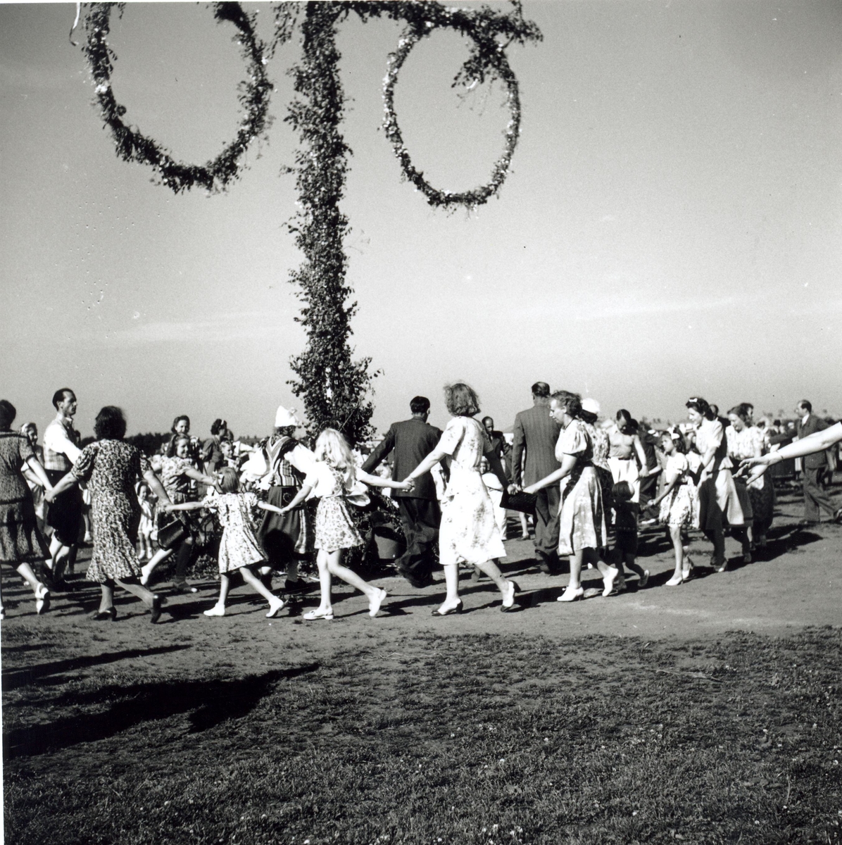 Dans kring midsommarstången under hantverksmässan i Kalmar 1947.