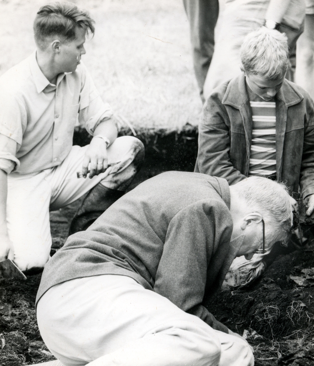 Kung Gustaf VI Adolf, som var känd för sitt intresse för arkeologi deltog i utgrävningarna vid Skedemosse.