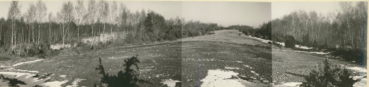 Den av kärrmarker omgivna åsryggen från sydväst (från ägogränsen mot Törnbotten). I förgrunden ett för grustäkt avbanat område.
