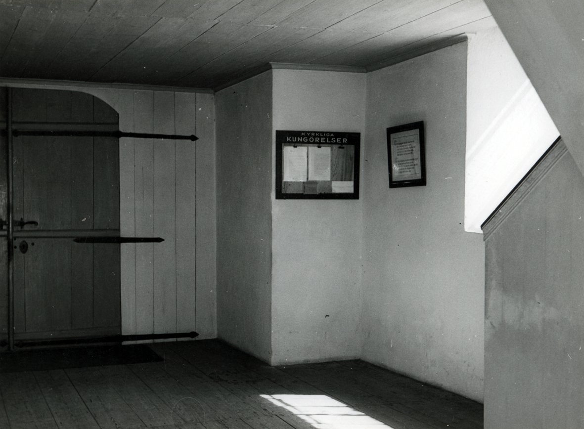 Interiör från vapenhuset i Kristdala kyrka innan restaureringen 1962.