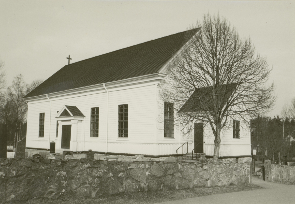 Karlslunda kyrka i Påryd. Nyklassicistisk stil med träfasad.