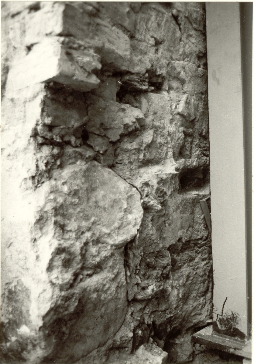 Titel: Norra väggen av den nyöppnade dörröppningen i Kungsköket, anslag strax vänster om vänstra benet i stålbygeln, Kalmar slott.