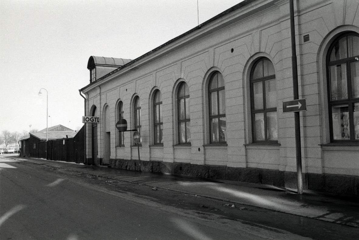 IOGTs hus på Strömgatan. Rivet mars 2015. Bodarna i bakgrunden revs på 1970-talet och gav plats för en parkering.
