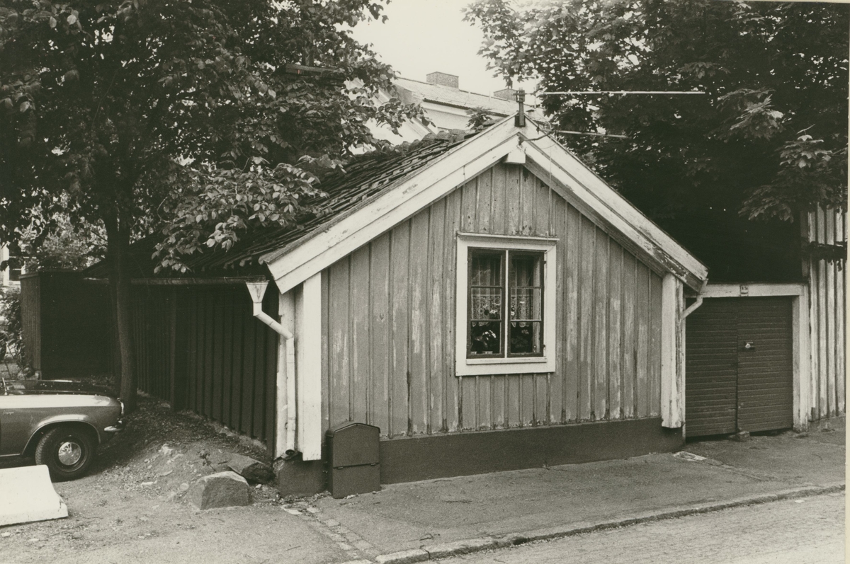 Byggnadsinventering juni 1974, enfamiljsbostad med fasad mot Fiskaregatan. Bilderna är tagna inom ramen för Kalmar kommuns inventering av Kvarnholmens bebyggelse 1970-1971 och skänkta till länsmuseet.