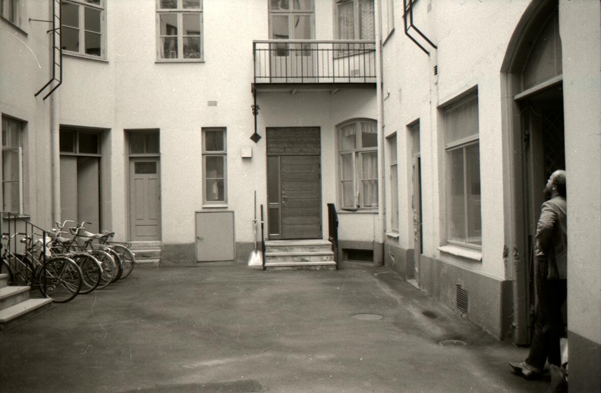 Hattmakare Sven Johanssons verkstad S. Långgatan 17. Innergården på Kv Apotekaren 18 med entrén till hattmakareverkstaden i bortre västra hörnet.