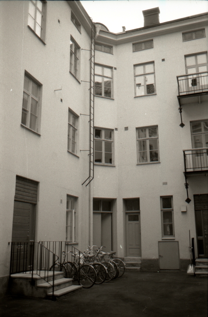 Hattmakare Sven Johanssons verkstad S. Långgatan 17. Innergården på Kv Apotekaren 18 med entrén till hattmakareverkstaden i bortre västra hörnet.