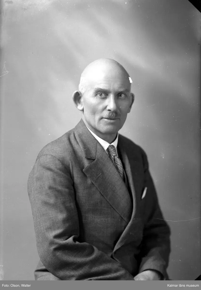 Ateljébild på en man i kostym. Enligt Walter Olsons journal är bilden beställd av herr Wirén.