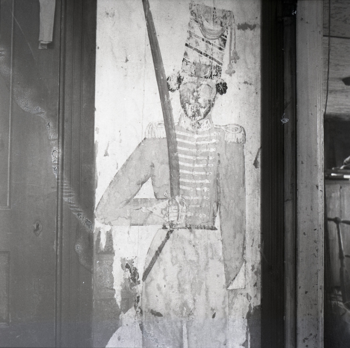 Husar, målning med limfärg på klistrat papper.