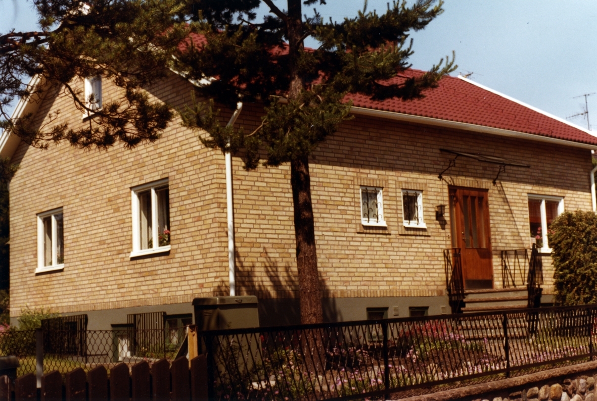 Ett bostadshus med sadeltak och tegelfasad. Har trappa till entrén. Bostadshuset befinner sig på Älgvägen 3. Ägaren hette Lind och byggmästaren var Bertil Danielsson.