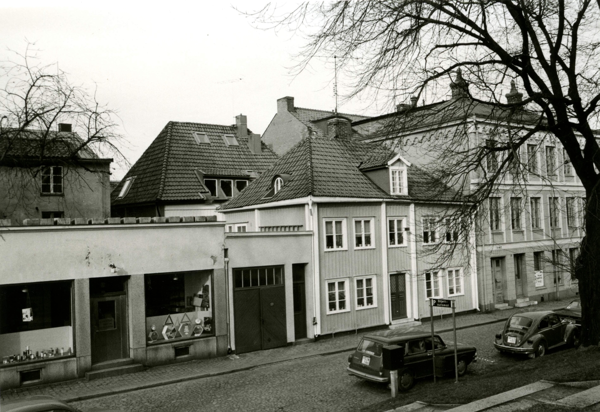 Kvarteret Fältskären i Kalmar. Bilden visar fasaderna mot Södra Vallgatan 5-9, sedda mot norr från vallen.