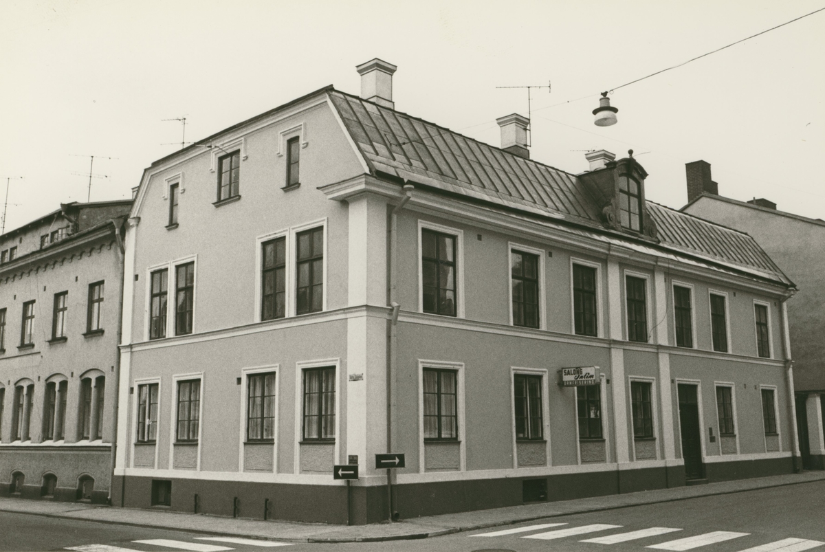 Byggnadsinventering juni 1974, bostadshus med fasad mot Norra Långgatan - Östra Sjögatan. Bilderna är tagna inom ramen för Kalmar kommuns inventering av Kvarnholmens bebyggelse 1970-1971 och skänkta till länsmuseet.
