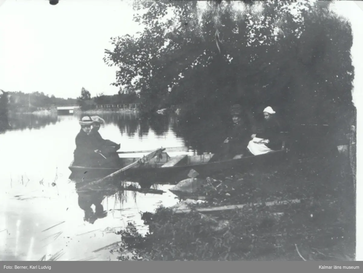 Lydia och Karin Berner och Nina Rosander i båt utanför Hvilan.