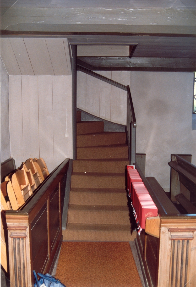 Trappuppgången till orgelläktaren i Mortorps kyrka.