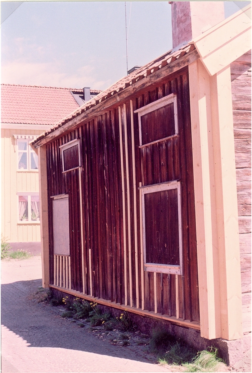 Uthus i kvarteret Sparven. Detta hus var ett av dem som sparades och renoverades då delar av Malmen revs för länsstyrelsens och polisens byggen.