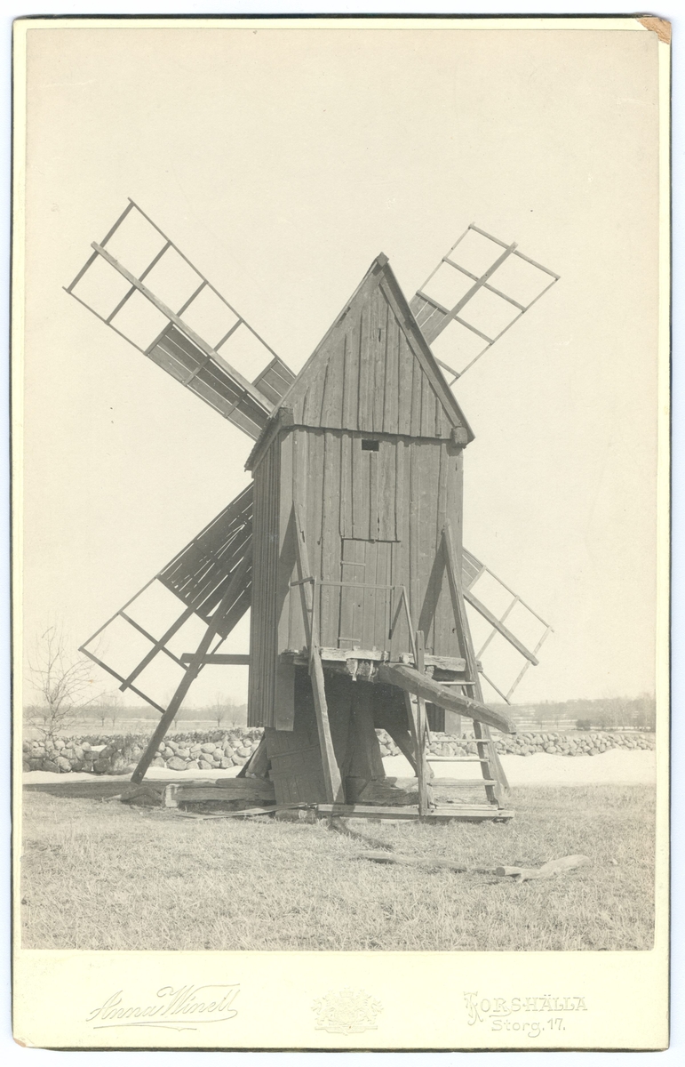 Titel: Väderkvarn (stubbkvarn) med trappa och träfasad