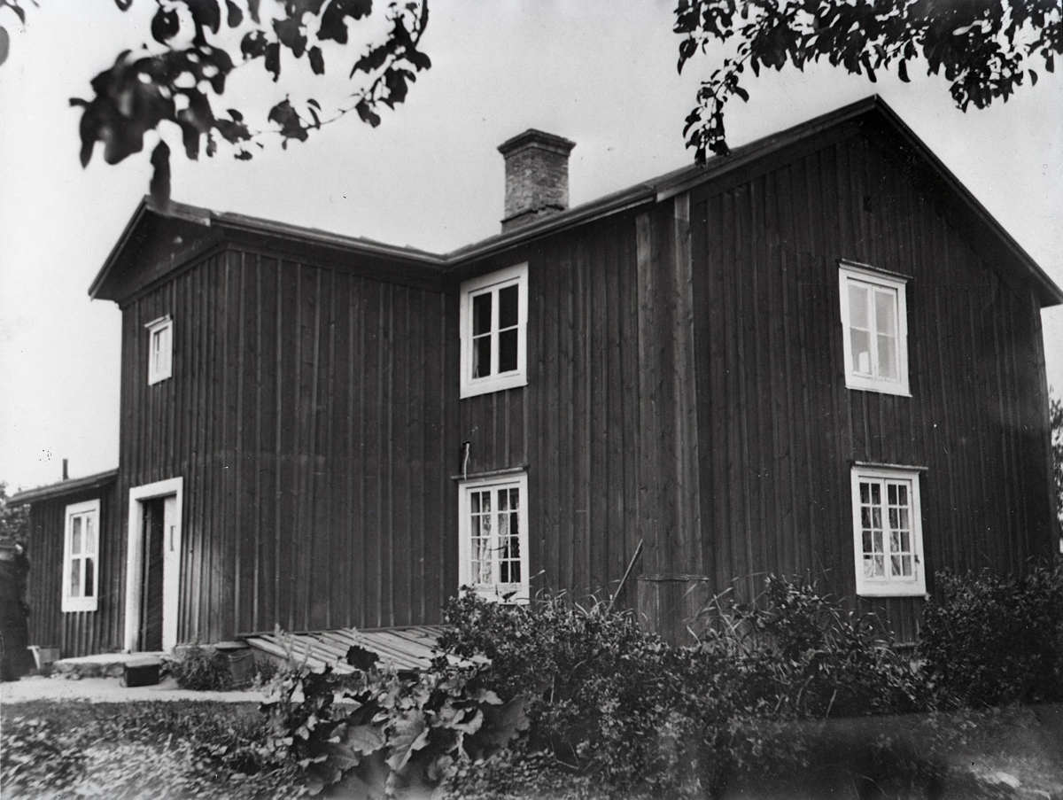 Oscar Hullgrens födelsehus. Ett bostadshus med sadeltak, skorsten och träfasad.