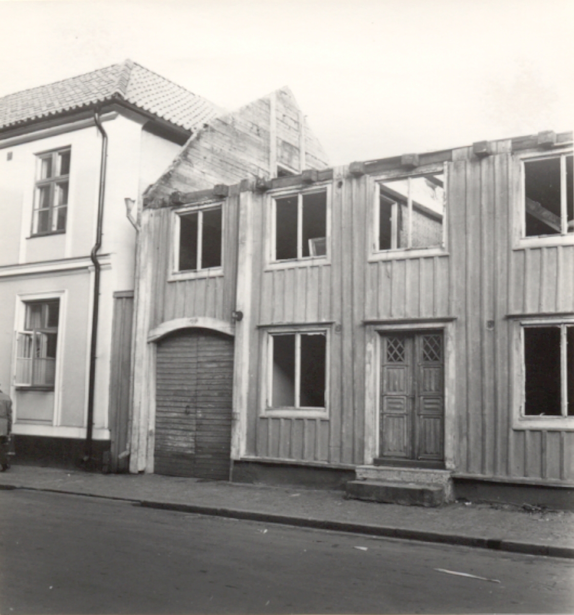 Magistern 12, Storgatan. Trähus under rivning för att lämna plats för kontorshus för Kalmar kommun.