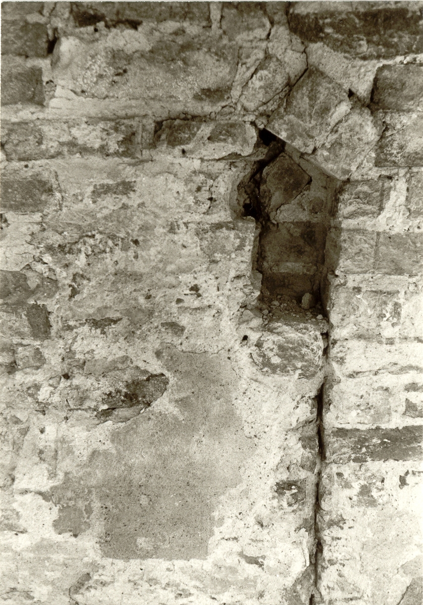 Titel: Västra fasaden. Nyupptäckt fönsteröppning omedelbart norr om fönster nr V.
