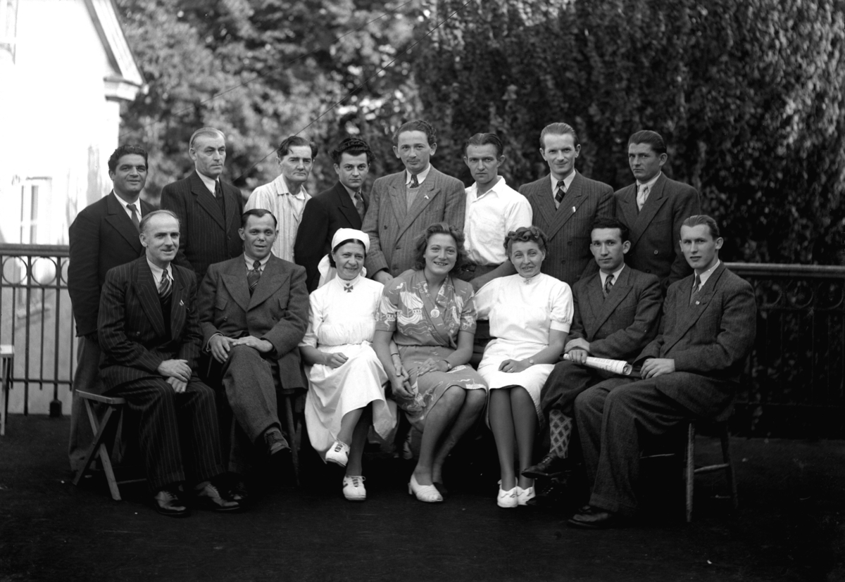 Patienter och personal på Beredskapssjukhuset samlade på balkongen.