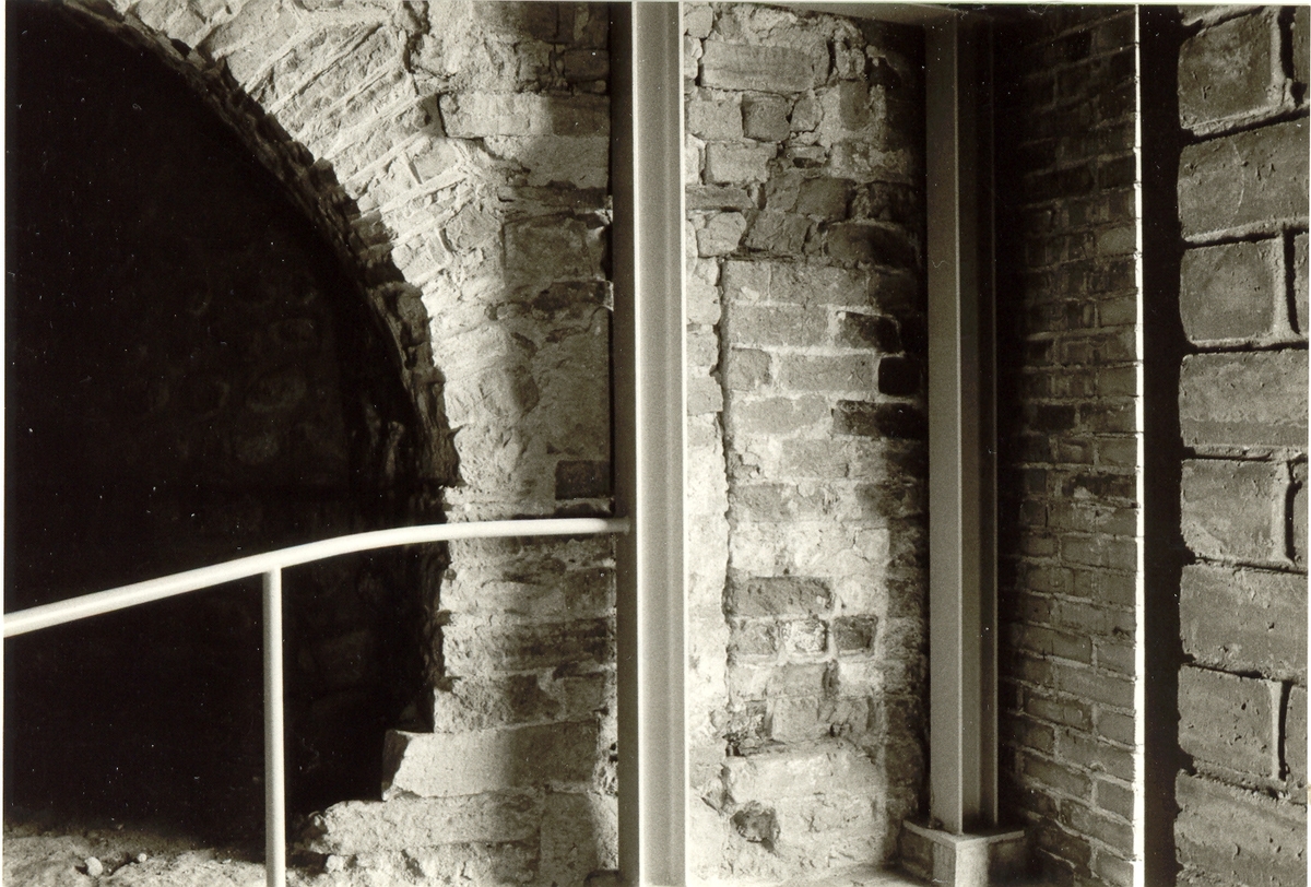 Lilla spisen i Kungsköket på Kalmar slott. Bilden visar den södra sidan av södra dörröppningen, efter restaurering.
