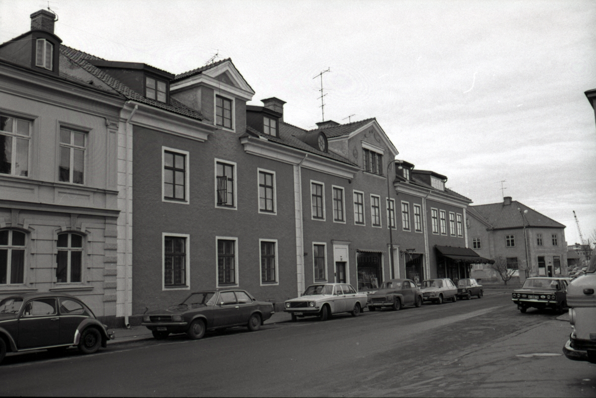Butiksbyggnad och bostadshus i putsad fasad i kvarteret Braxen 1, Postgatan 5.