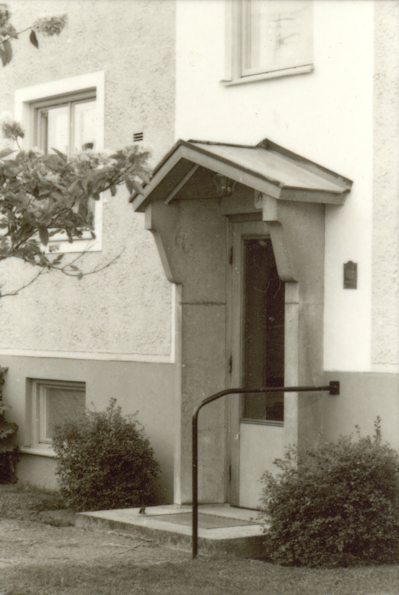 Kv Gullregnet. Entrén till en av Wolinska stiftelsen bostäder.
