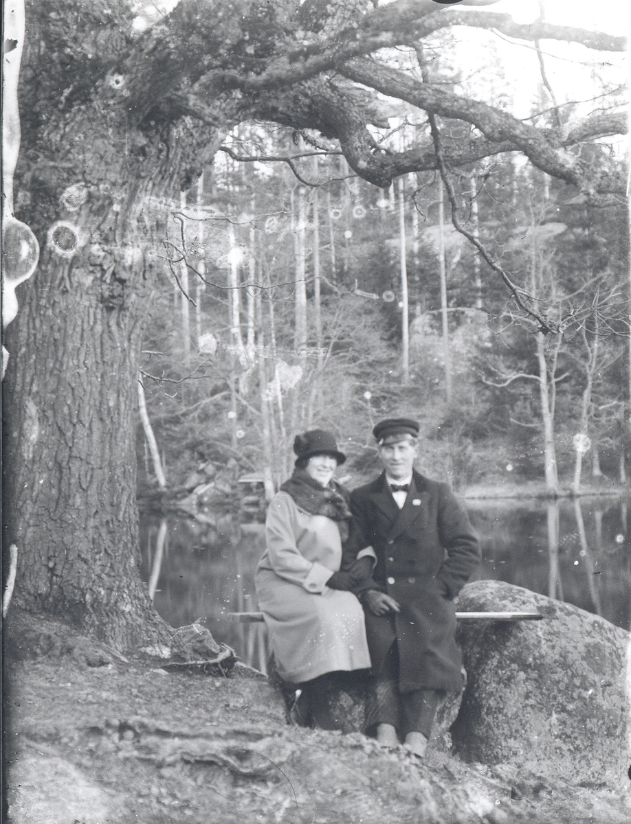 Emils syster Anna med fästmannen Bror Karlsson, Misterhult.¨Fotograferade under "Kärleks-eken".