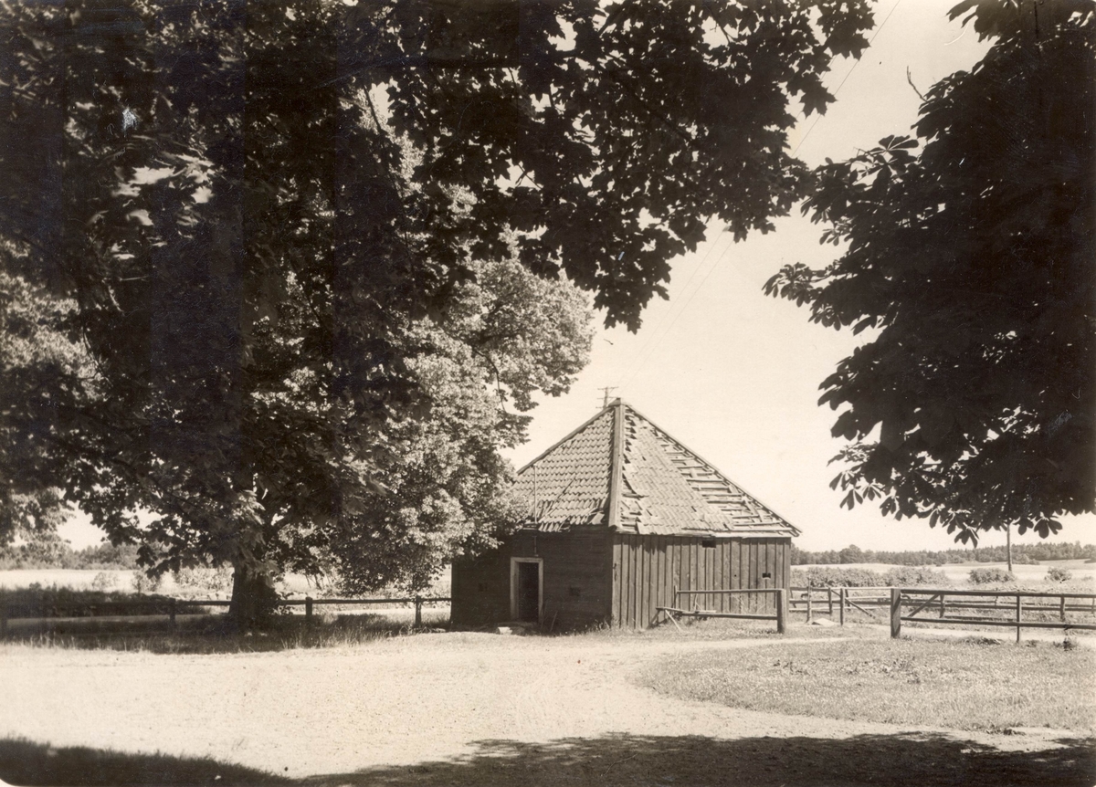 En förrådsbyggnad med pyramidtak på Förlösa gård.