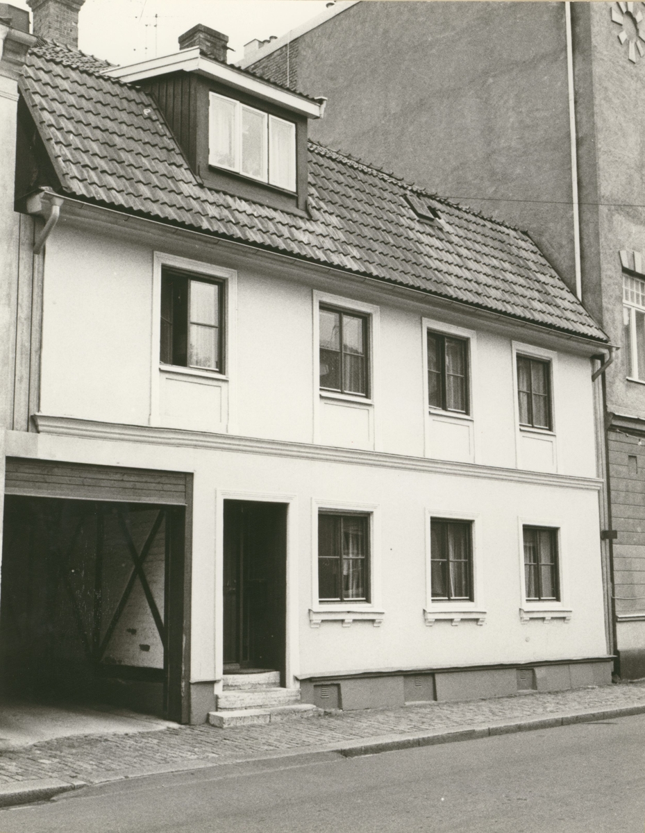 Byggnadsinventering juni 1974, bostadshus av korsvirke med portvalv. Bilderna är tagna inom ramen för Kalmar kommuns inventering av Kvarnholmens bebyggelse 1974 och skänkta till länsmuseet.