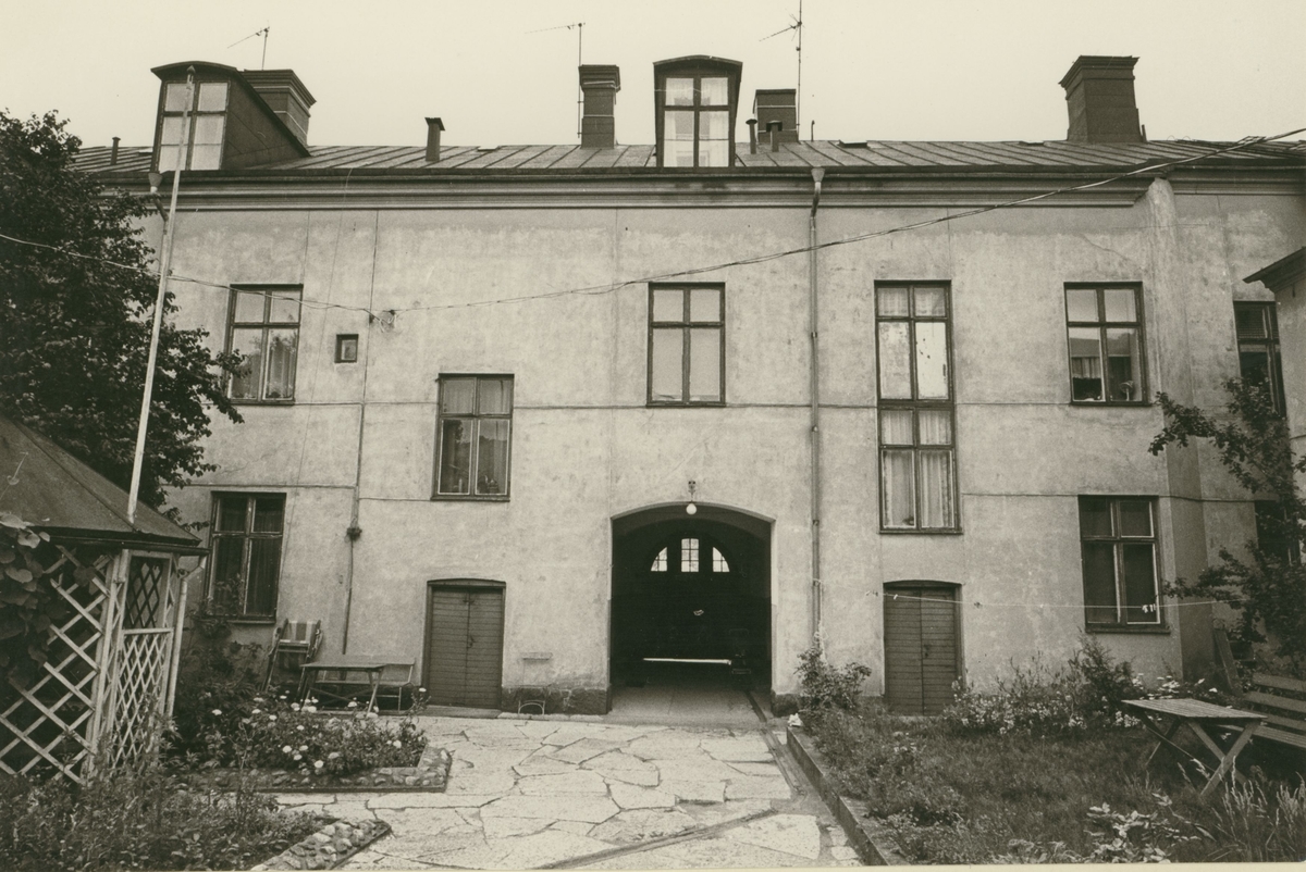 Byggnadsinventering juni 1974, bostadshus med fasad mot gård. Bilderna är tagna inom ramen för Kalmar kommuns inventering av Kvarnholmens bebyggelse 1974 och skänkta till länsmuseet.