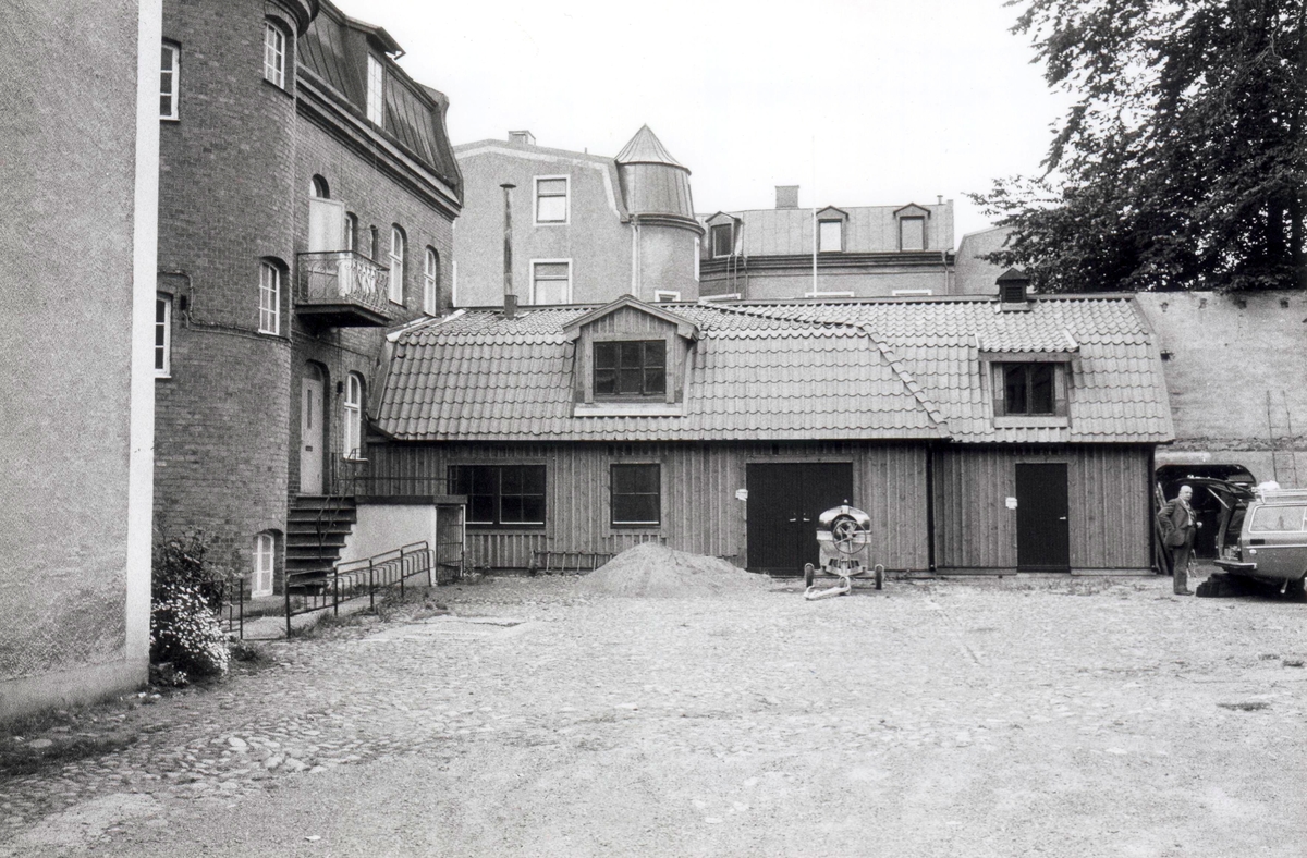Gårdsfasad och gårdshus i kv. Brandvakten. Bilderna är tagna inom ramen för Kalmar kommuns inventering av Kvarnholmens bebyggelse 1970-1971 och skänkta till länsmuseet.