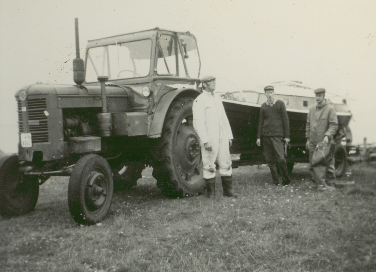 Båttransport på Fäholmen. Rune Nilsson, Karl-Erik Hemmingsson och Gunnar Falk., Glömminge.