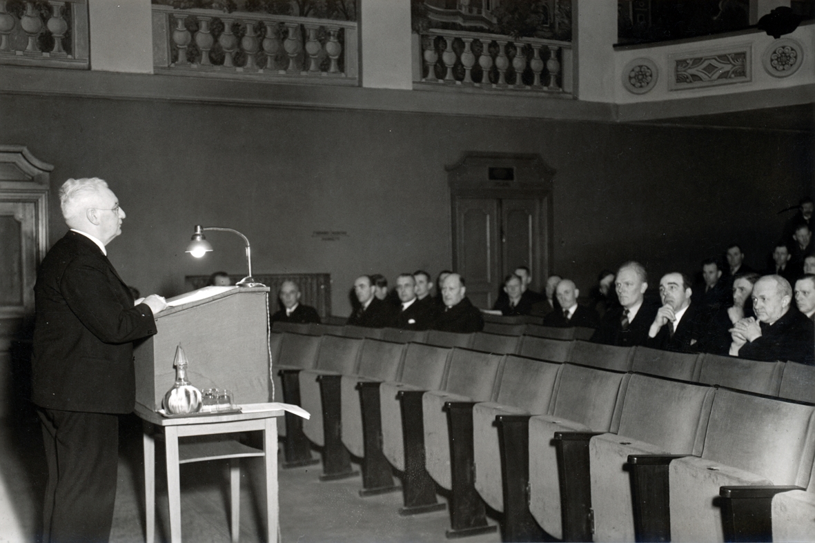 Landshövding John Falk, Kalmar, i talarstolen. 1930-talet.