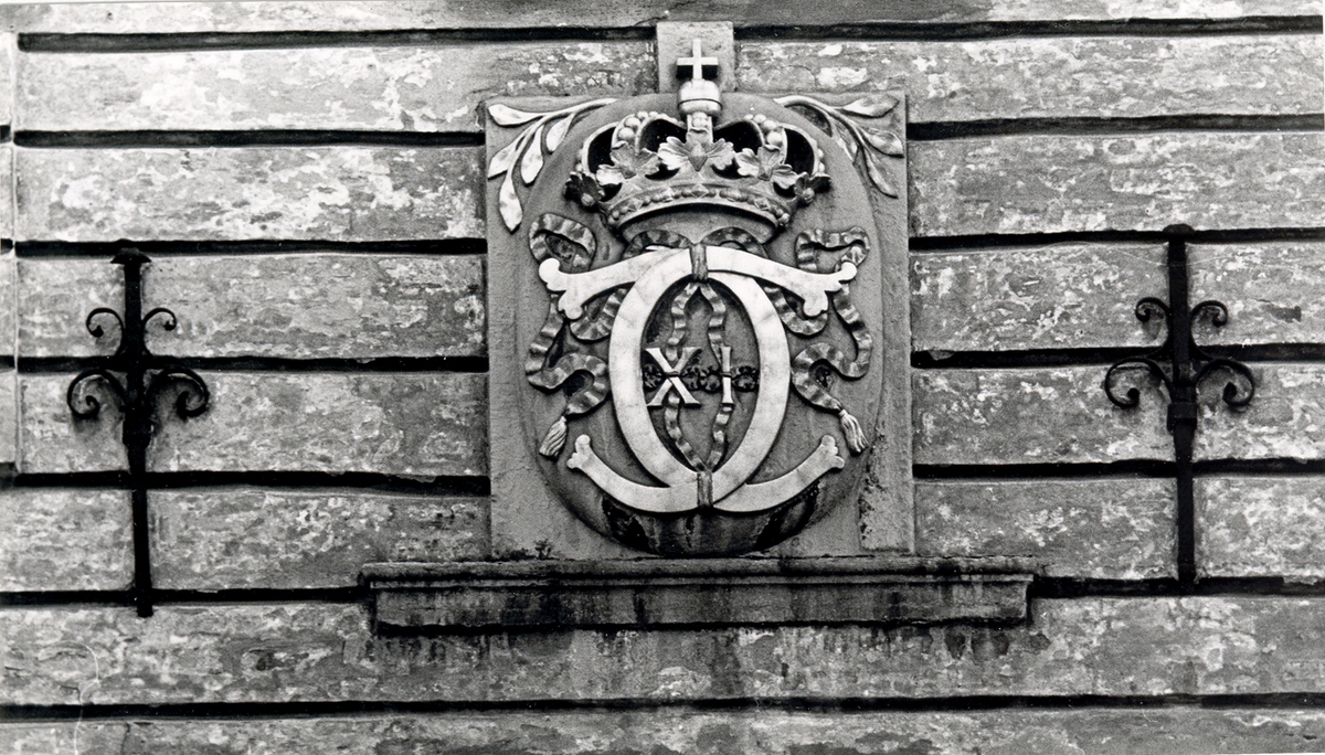 Titel: Detalj av Karl XI:s kungamonogram på rådhuset.
