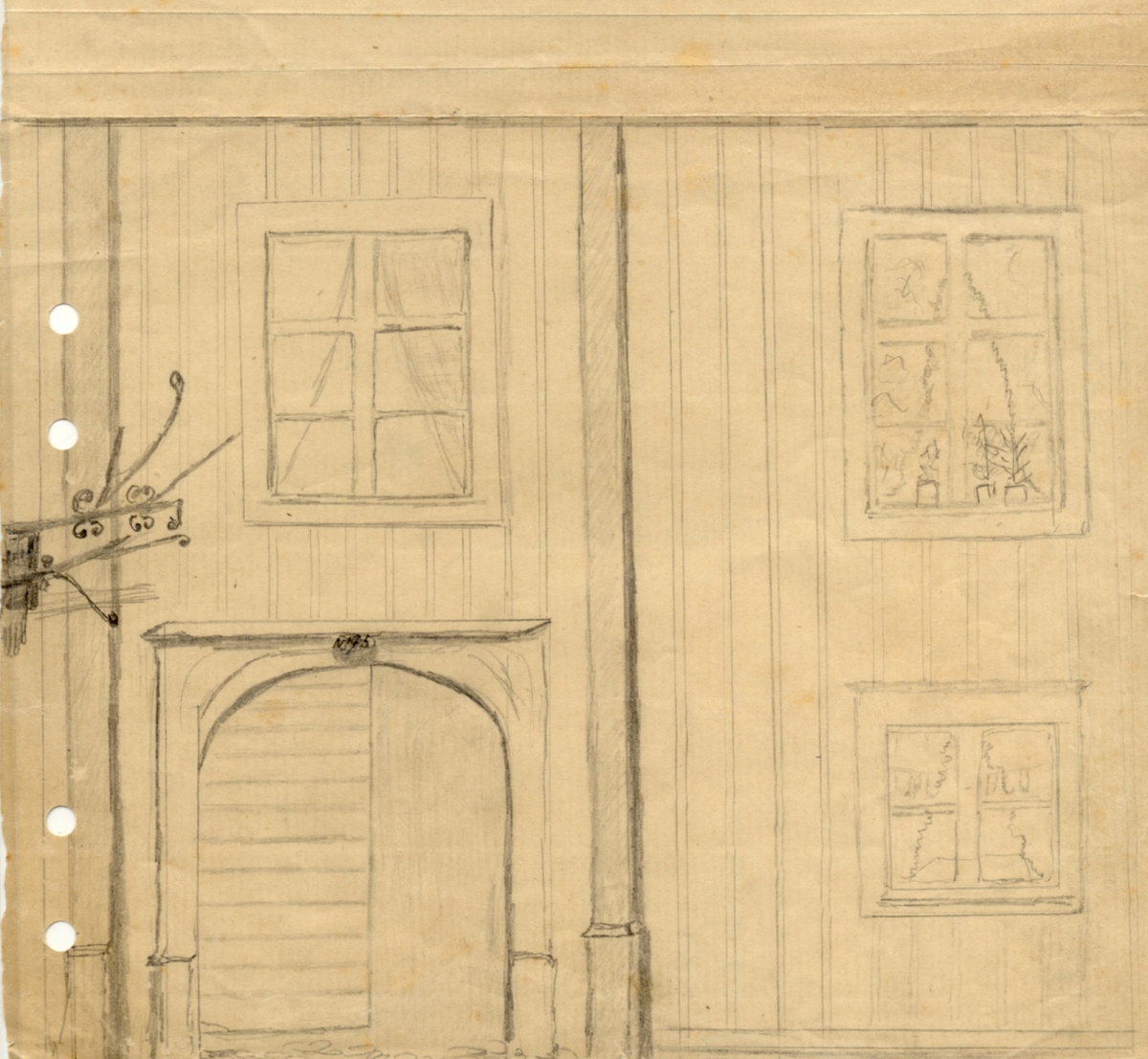 Teckning av fasad i kv. Domprosten i Kalmar.