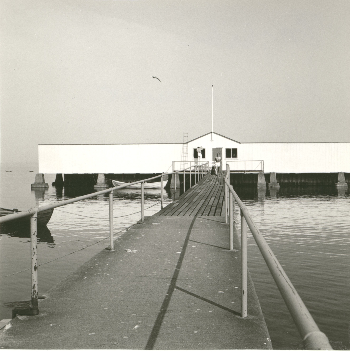 Kallbadhuset med hantverkare och badande.