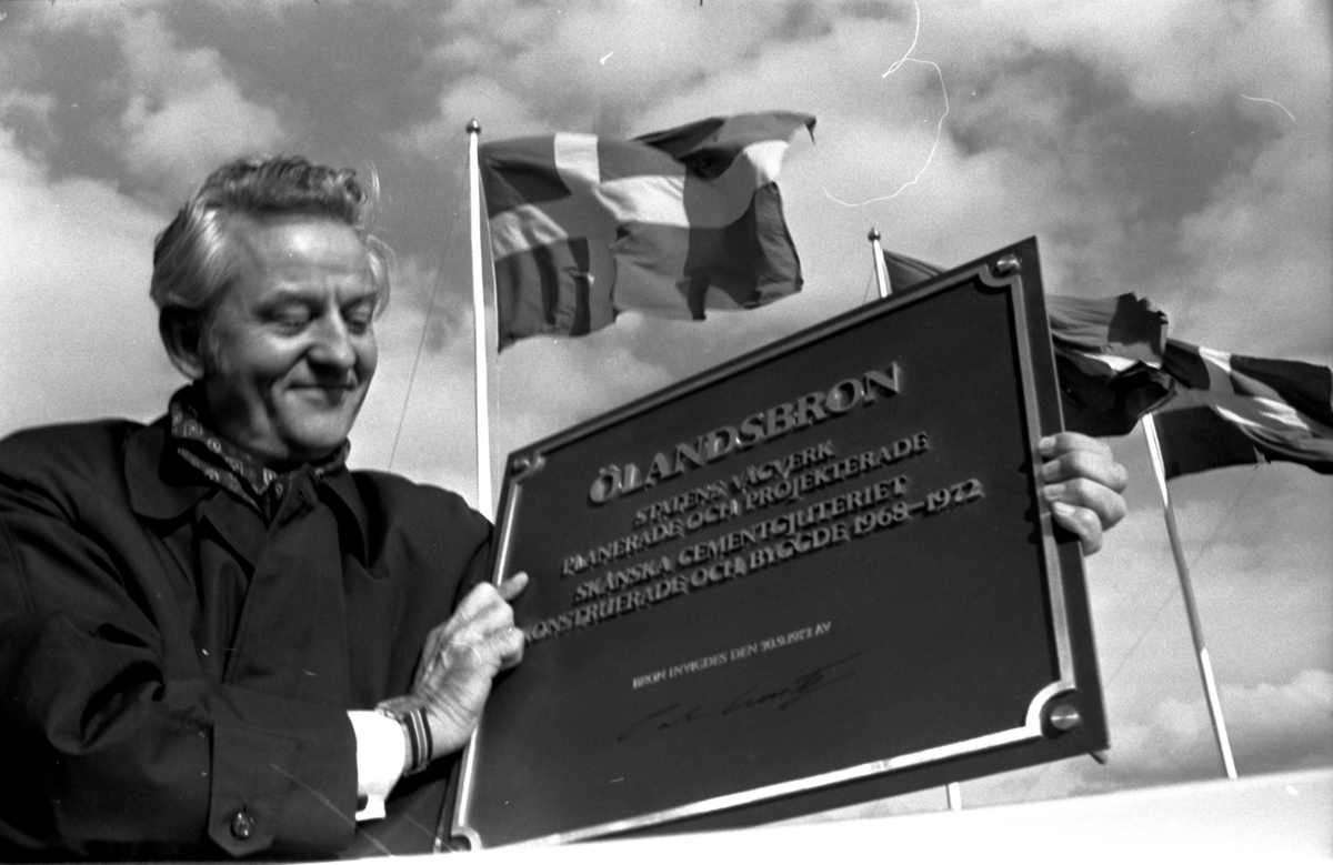 Owe Alm visar minnestavlan med kronprinsens namnteckning.