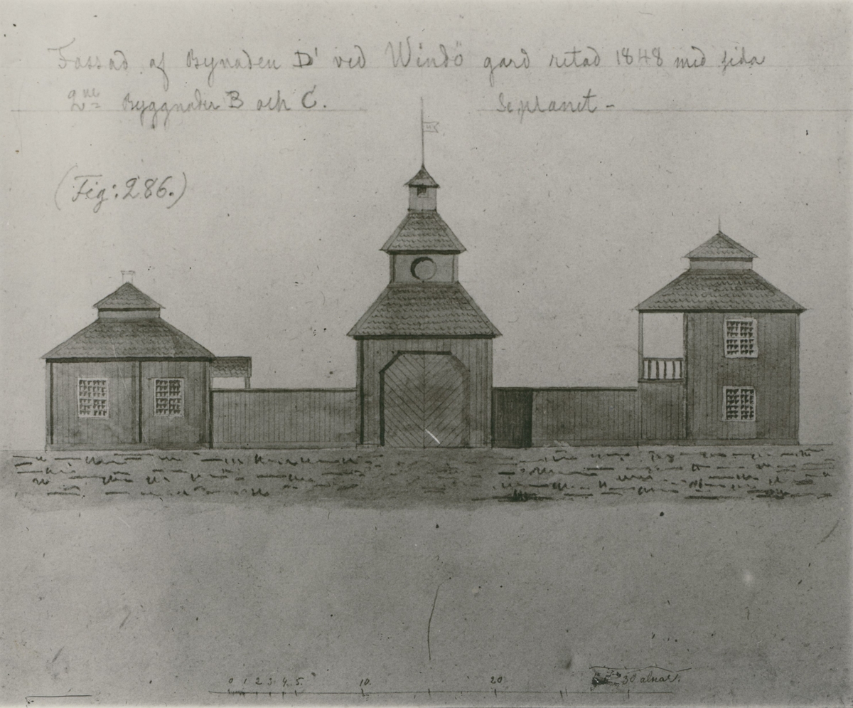 "Fasad af byggnaden D ved Windö gård ritad 1848 med ...