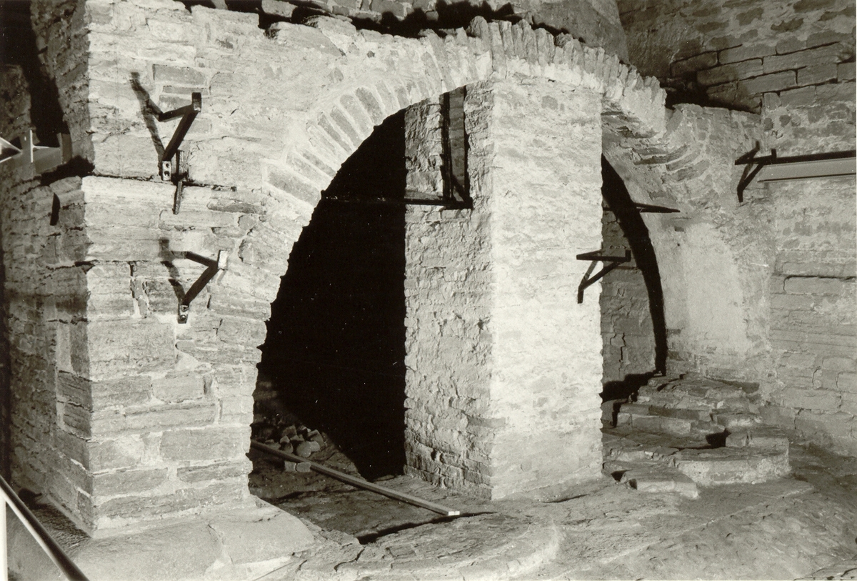 Södra fasaden av stora spisen i kungsköket på Kalmar slott.