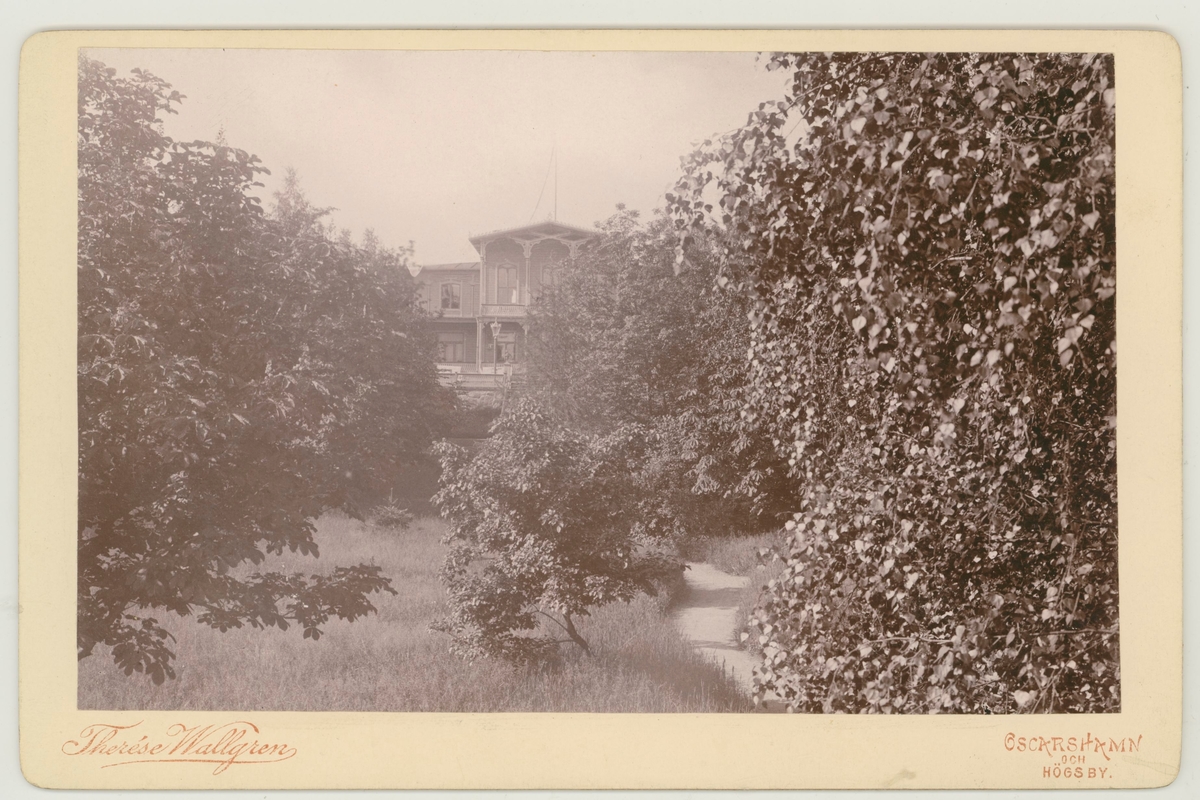 Alva och Anna Winells bostadshus, med träd i förgrunden.